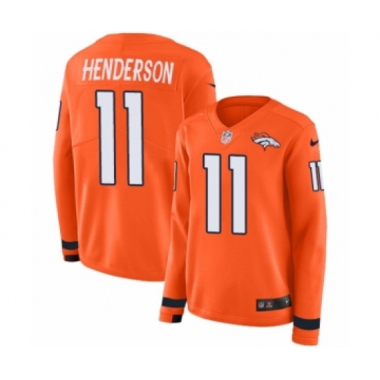 >Women's Nike Denver Broncos #11 Carlos Henderson Limited Orange Therma Long Sleeve NFL Jersey