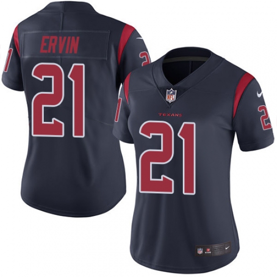 Women's Nike Houston Texans #21 Tyler Ervin Limited Navy Blue Rush Vapor Untouchable NFL Jersey