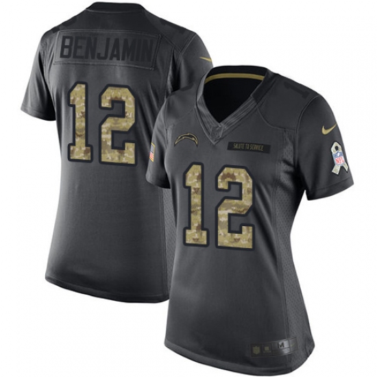 Home>NFL>Los Angeles Chargers>Travis Benjamin>Women's Nike Los Angeles Chargers #12 Travis Benjamin Limited Black 2016 Salute to Service NFL Jersey