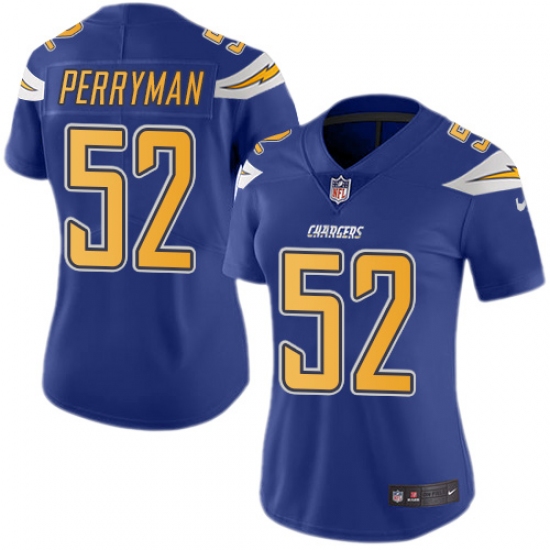 Home>NFL>Los Angeles Chargers>Denzel Perryman>Women's Nike Los Angeles Chargers #52 Denzel Perryman Limited Electric Blue Rush Vapor Untouchable NFL Jersey