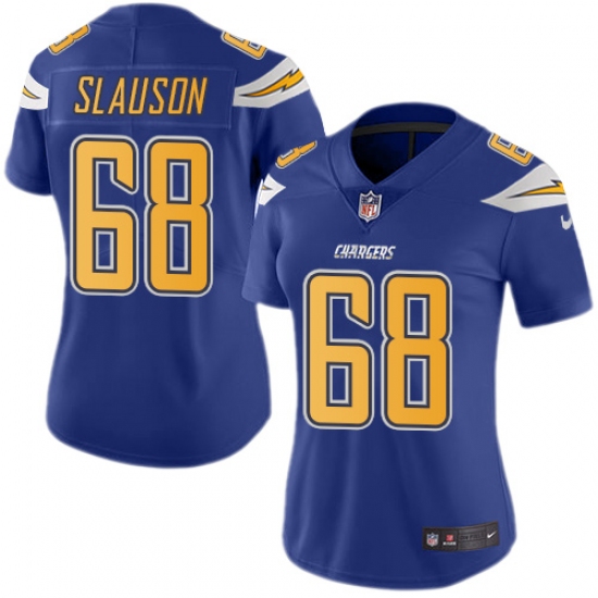 Home>NFL>Los Angeles Chargers>Matt Slauson>Women's Nike Los Angeles Chargers #68 Matt Slauson Limited Electric Blue Rush Vapor Untouchable NFL Jersey