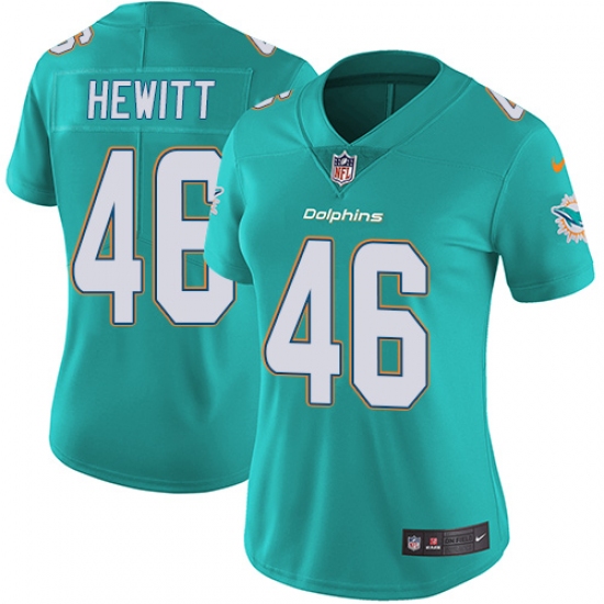 Home>NFL>Miami Dolphins>Neville Hewitt>Women's Nike Miami Dolphins #46 Neville Hewitt Aqua Green Team Color Vapor Untouchable Limited Player NFL Jersey