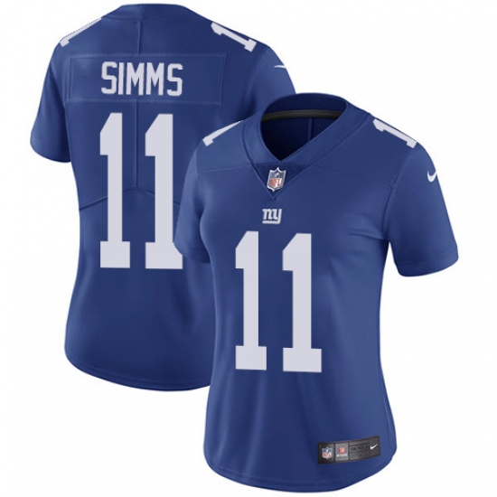 Women's Nike New York Giants #11 Phil Simms Royal Blue Team Color Vapor Untouchable Limited Player NFL Jersey