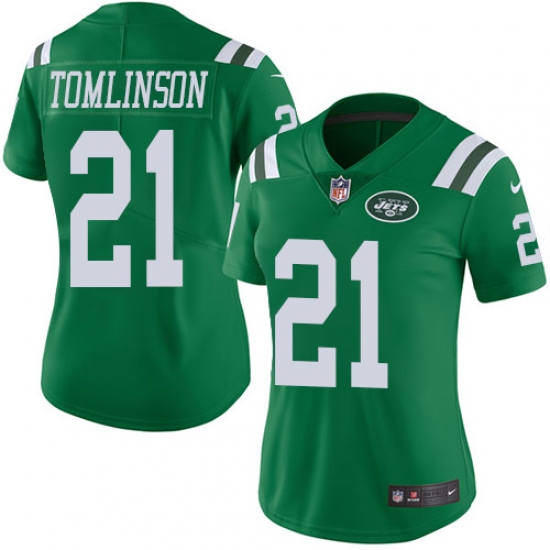 Home>NFL>New York Jets>LaDainian Tomlinson>Women's Nike New York Jets #21 LaDainian Tomlinson Limited Green Rush Vapor Untouchable NFL Jersey