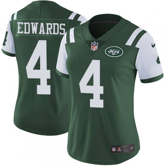Home>NFL>New York Jets>Lac Edwards>Women's Nike New York Jets #4 Lac Edwards Green Team Color Vapor Untouchable Limited Player NFL Jersey