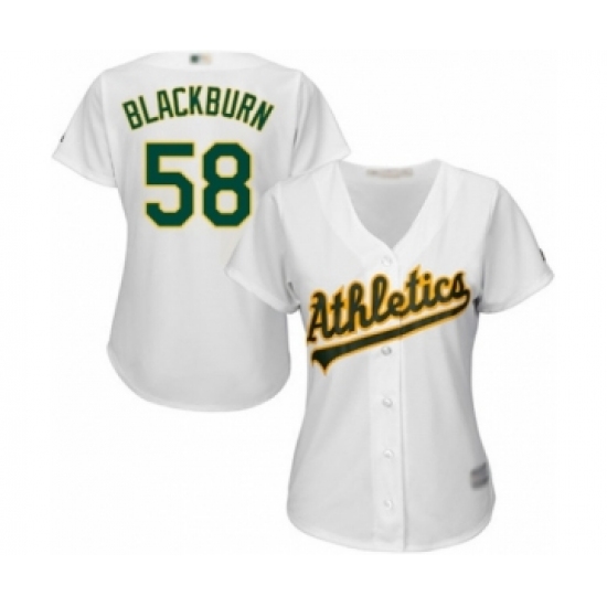 >Women's Oakland Athletics #58 Paul Blackburn Authentic White Home Cool Base Baseball Player Jersey