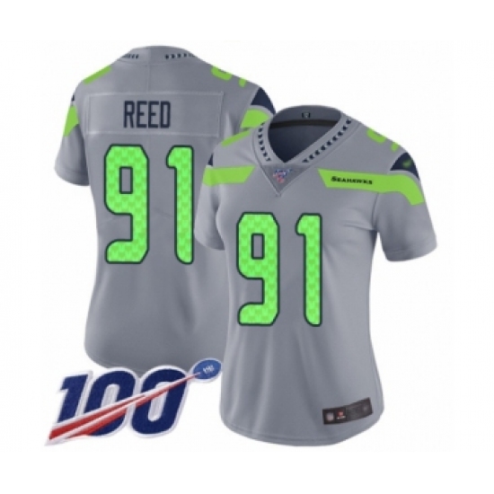 Women's Seattle Seahawks #91 Jarran Reed Limited Silver Inverted Legend 100th Season Football Jersey