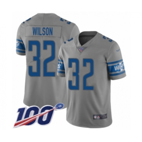>Youth Detroit Lions #32 Tavon Wilson Limited Gray Inverted Legend 100th Season Football Jersey