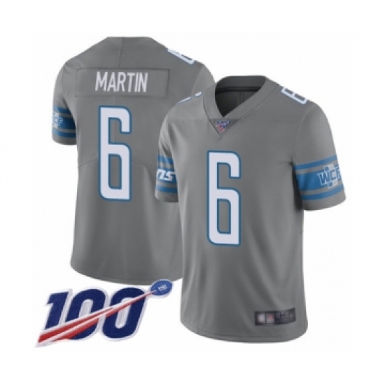 >Youth Detroit Lions #6 Sam Martin Limited Steel Rush Vapor Untouchable 100th Season Football Jersey