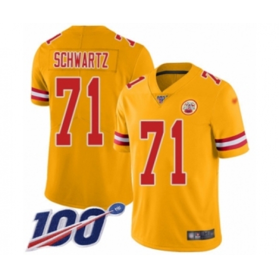 >Youth Kansas City Chiefs #71 Mitchell Schwartz Limited Gold Inverted Legend 100th Season Football Jersey