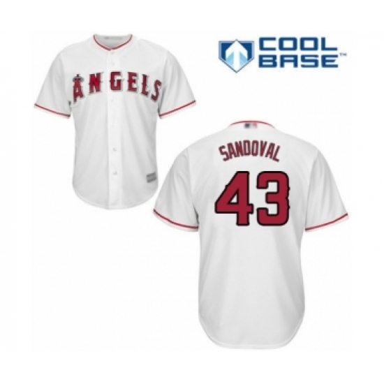 >Youth Los Angeles Angels of Anaheim #43 Patrick Sandoval Authentic White Home Cool Base Baseball Player Jersey