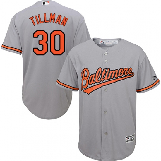 Home>MLB>Baltimore Orioles>Chris Tillman>Youth Majestic Baltimore Orioles #30 Chris Tillman Authentic Grey Road Cool Base MLB Jersey