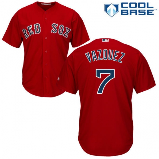 Home>MLB>Boston Red Sox>Christian Vazquez>Youth Majestic Boston Red Sox #7 Christian Vazquez Replica Red Alternate Home Cool Base MLB Jersey