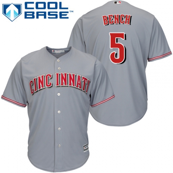 Youth Majestic Cincinnati Reds #5 Johnny Bench Authentic Grey Road Cool Base MLB Jersey