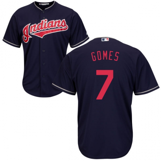 Home>MLB>Cleveland Indians>Yan Gomes>Youth Majestic Cleveland Indians #7 Yan Gomes Replica Navy Blue Alternate 1 Cool Base MLB Jersey