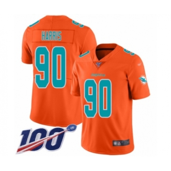 >Youth Miami Dolphins #90 Charles Harris Limited Orange Inverted Legend 100th Season Football Jersey