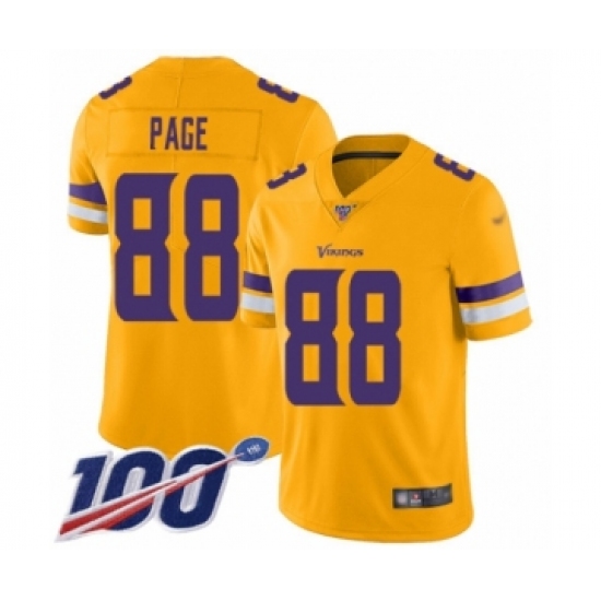 >Youth Minnesota Vikings #88 Alan Page Limited Gold Inverted Legend 100th Season Football Jersey