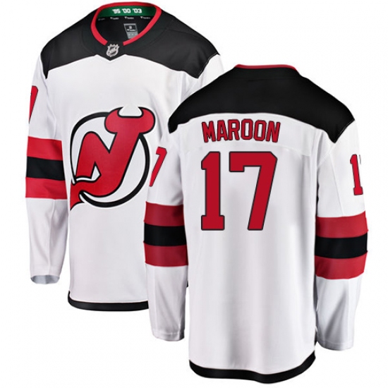 >Youth New Jersey Devils #17 Patrick Maroon Fanatics Branded White Away Breakaway NHL Jersey