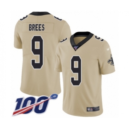 >Youth New Orleans Saints #9 Drew Brees Limited Gold Inverted Legend 100th Season Football Jersey