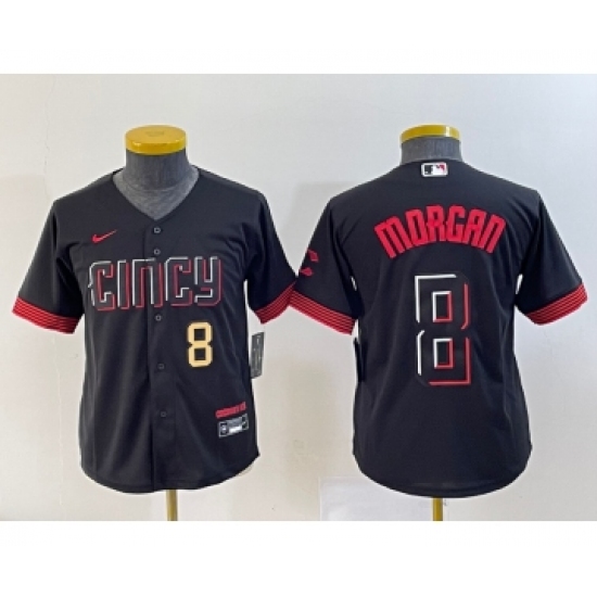 >Youth Nike Cincinnati Reds #8 Joe Morgan Number Black 2023 City Connect Cool Base Stitched Jersey 1