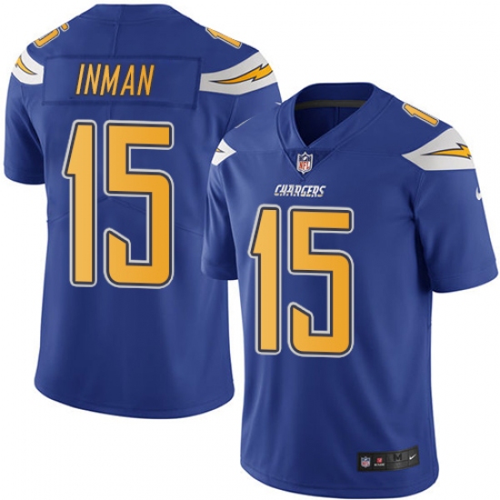 Home>NFL>Los Angeles Chargers>Dontrelle Inman>Youth Nike Los Angeles Chargers #15 Dontrelle Inman Limited Electric Blue Rush Vapor Untouchable NFL Jersey
