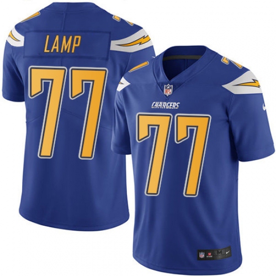 Home>NFL>Los Angeles Chargers>Forrest Lamp>Youth Nike Los Angeles Chargers #77 Forrest Lamp Limited Electric Blue Rush Vapor Untouchable NFL Jersey