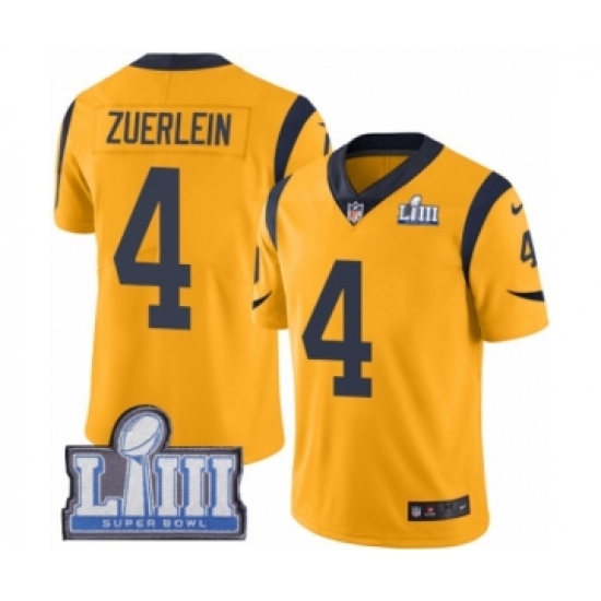 >Youth Nike Los Angeles Rams #4 Greg Zuerlein Limited Gold Rush Vapor Untouchable Super Bowl LIII Bound NFL Jersey