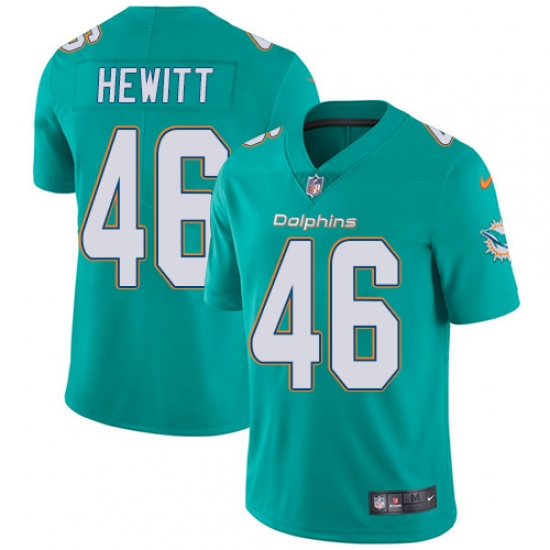 Home>NFL>Miami Dolphins>Neville Hewitt>Youth Nike Miami Dolphins #46 Neville Hewitt Aqua Green Team Color Vapor Untouchable Limited Player NFL Jersey