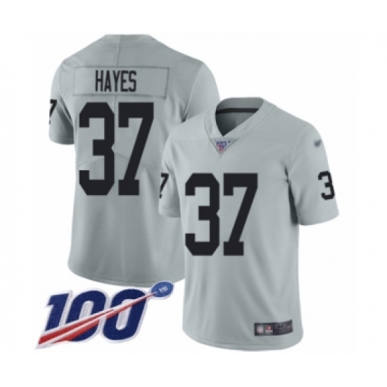 >Youth Oakland Raiders #37 Lester Hayes Limited Silver Inverted Legend 100th Season Football Jersey