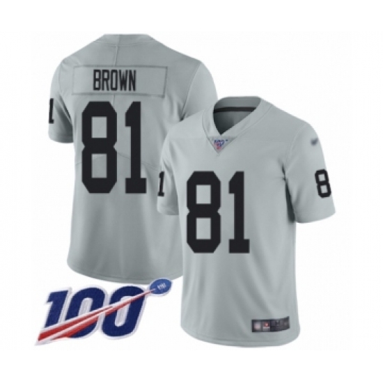>Youth Oakland Raiders #81 Tim Brown Limited Silver Inverted Legend 100th Season Football Jersey