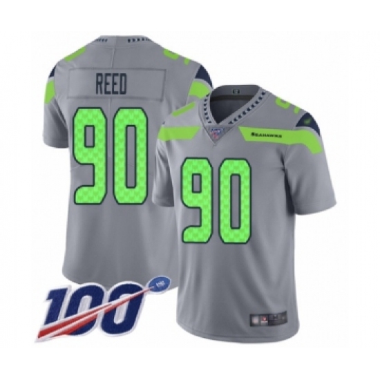 >Youth Seattle Seahawks #90 Jarran Reed Limited Silver Inverted Legend 100th Season Football Jersey