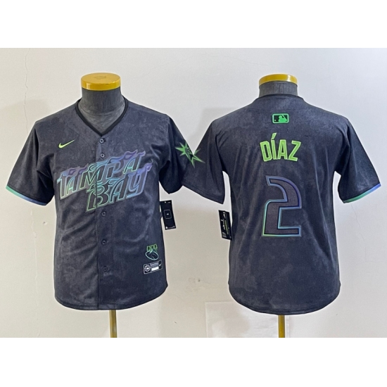 Youth Tampa Bay Rays #2 Yandy Diaz Charcoal 2024 City Connect Player Number Limited Cool Base Jerseys