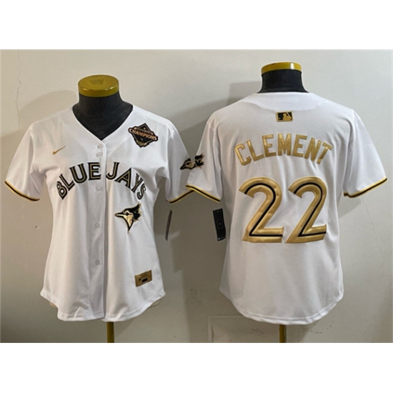 >Youth Toronto Blue Jays #22 Ernie Clement White Gold 2025 American League Champions Limited Stitched Jersey