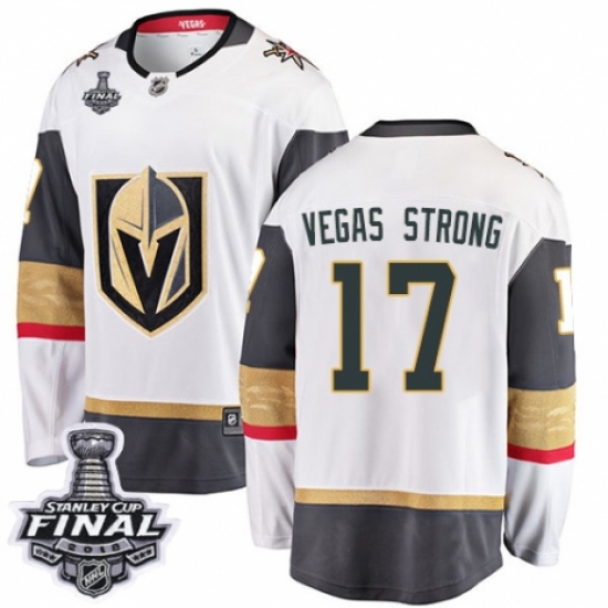 Youth Vegas Golden Knights #17 Vegas Strong Authentic White Away Fanatics Branded Breakaway 2018 Stanley Cup Final NHL Jersey