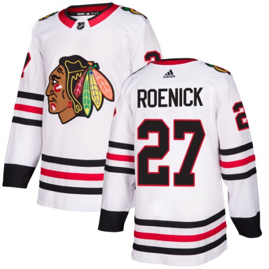 Home>NHL>Chicago Blackhawks>Jeremy Roenick>Men's Adidas Chicago Blackhawks #27 Jeremy Roenick Authentic White Away NHL Jersey