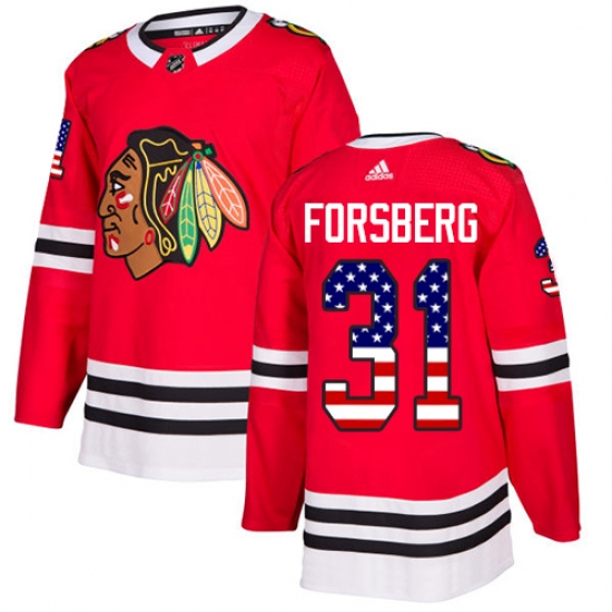 Home>NHL>Chicago Blackhawks>Anton Forsberg>Men's Adidas Chicago Blackhawks #31 Anton Forsberg Authentic Red USA Flag Fashion NHL Jersey