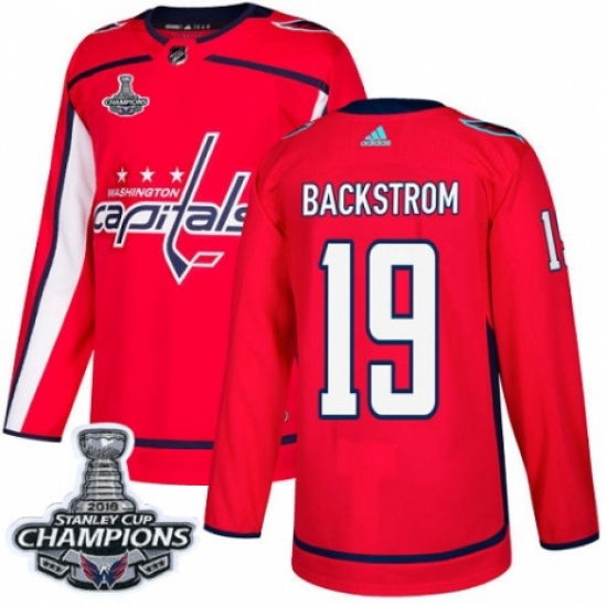 Men's Adidas Washington Capitals #19 Nicklas Backstrom Authentic Red Home 2018 Stanley Cup Final Champions NHL Jersey
