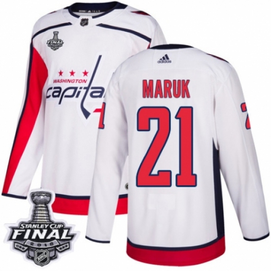Men's Adidas Washington Capitals #21 Dennis Maruk Authentic White Away 2018 Stanley Cup Final NHL Jersey