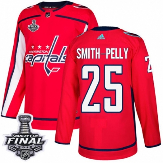 Men's Adidas Washington Capitals #25 Devante Smith-Pelly Authentic Red Home 2018 Stanley Cup Final NHL Jersey