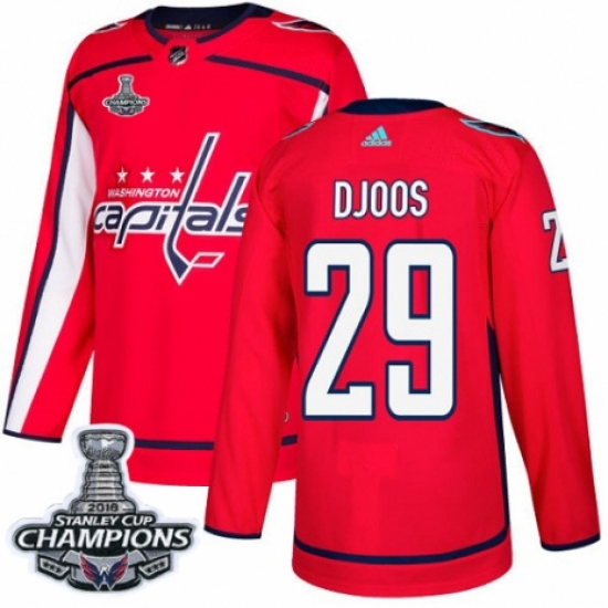 Men's Adidas Washington Capitals #29 Christian Djoos Authentic Red Home 2018 Stanley Cup Final Champions NHL Jersey