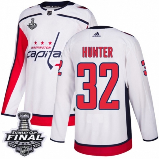 Men's Adidas Washington Capitals #32 Dale Hunter Authentic White Away 2018 Stanley Cup Final NHL Jersey