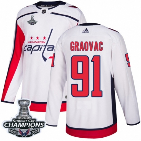 Men's Adidas Washington Capitals #91 Tyler Graovac Authentic White Away 2018 Stanley Cup Final Champions NHL Jersey