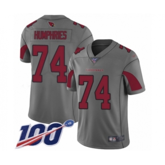 >Men's Arizona Cardinals #74 D.J. Humphries Limited Silver Inverted Legend 100th Season Football Jersey