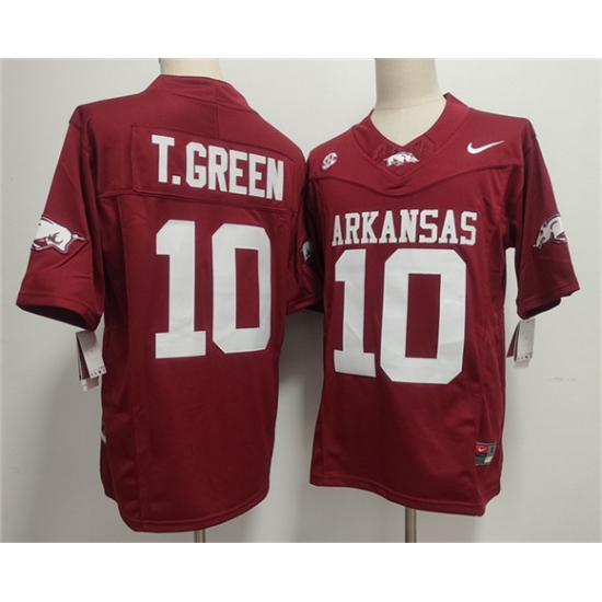 Men's Arkansas Razorbacks #10 TAYLEN GREEN Red 2025 F.U.S.E. Vapor Limited Stitched Football Jersey