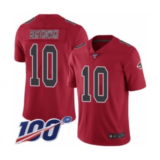 >Men's Atlanta Falcons #10 Steve Bartkowski Limited Red Rush Vapor Untouchable 100th Season Football Jersey