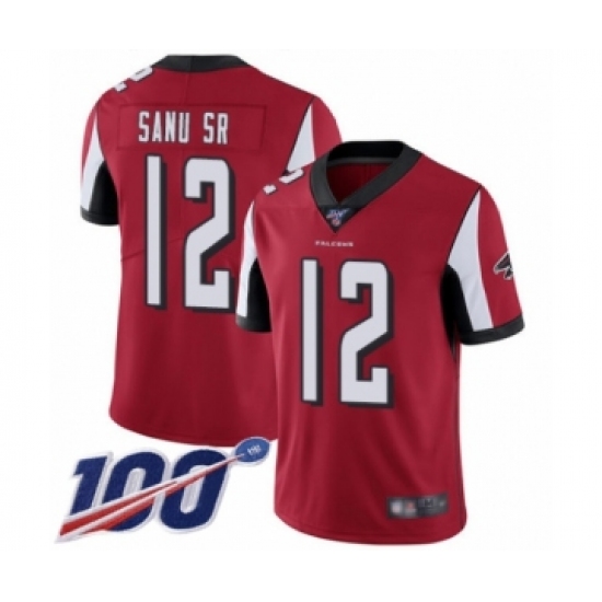 >Men's Atlanta Falcons #12 Mohamed Sanu Red Team Color Vapor Untouchable Limited Player 100th Season Football Jersey