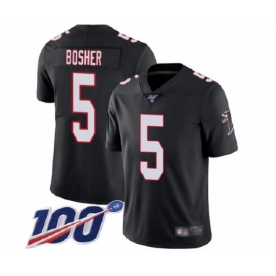 >Men's Atlanta Falcons #5 Matt Bosher Black Alternate Vapor Untouchable Limited Player 100th Season Football Jersey