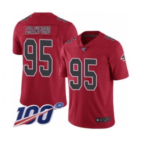 >Men's Atlanta Falcons #95 Jack Crawford Limited Red Rush Vapor Untouchable 100th Season Football Jersey
