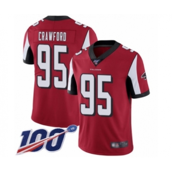 >Men's Atlanta Falcons #95 Jack Crawford Red Team Color Vapor Untouchable Limited Player 100th Season Football Jersey