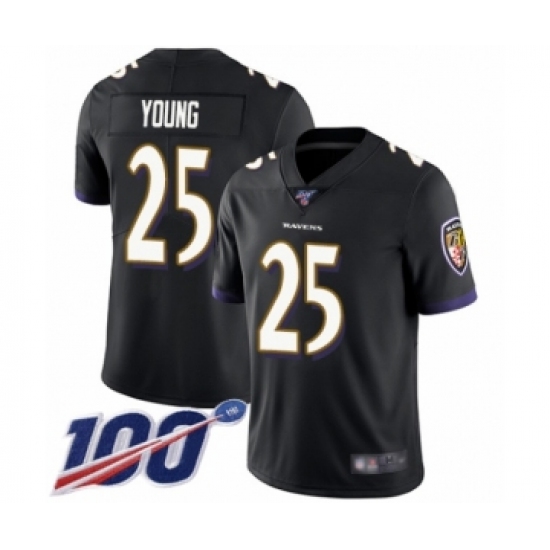 >Men's Baltimore Ravens #25 Tavon Young Black Alternate Vapor Untouchable Limited Player 100th Season Football Jersey